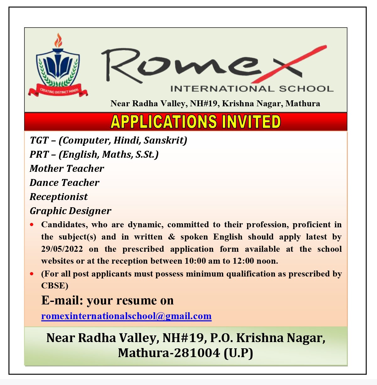 Welcome to Romex International School, Mathura